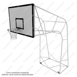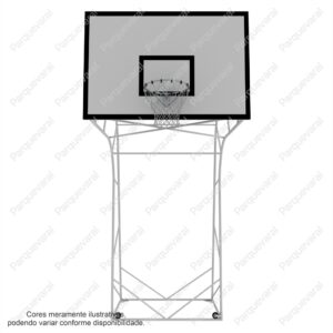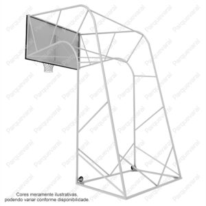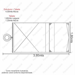 Confecção: Estrutura em tubo de aço, tabela em compensado naval 18mm, requadro da tabela em cantoneira, aro confeccionado em ferro trefilado e ferro chato, rede de seda, estrutura fixa (precisa fixar no chão com parabolt ou chumbar)