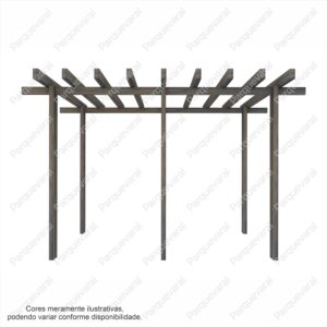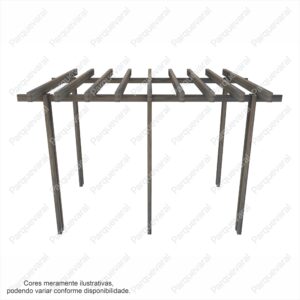 Confecção: Pés direitos, longarinas e treliças duplas em madeira de lei com 6,3cm X 6,3cm cada parte, ficando as medidas finais conforme abaixo: