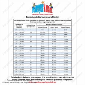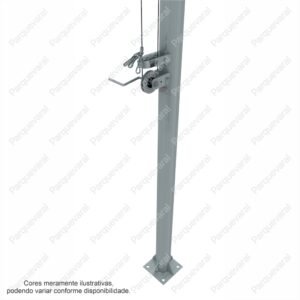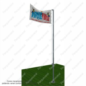 Confecção: Confeccionado em tubo de aço com as seguintes reduções: 4” – 3 1/2″ – 3”, com cabo de aço, prendedor de bandeira, roldanas e aparador de anilhas