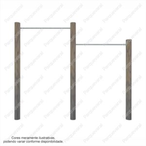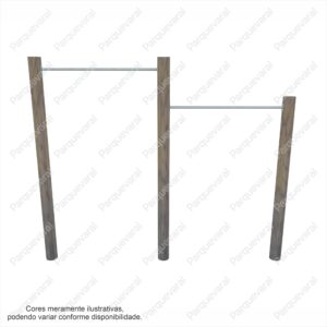 Confecção: Confeccionado basicamente em tora de eucalipto autoclavado e tubo de aço carbono, ferragens galvanizadas, equipamento fixo (precisa fixar no chão com bucha e parafuso ou chumbar)